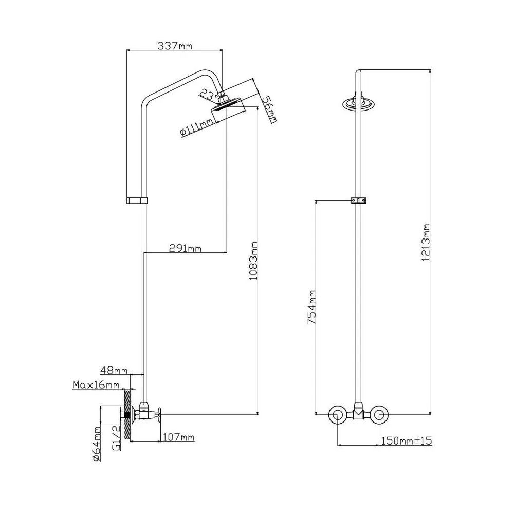 Душевая стойка со смесителем без излива хром Potato Эверест B35-350 купить в Архангельске по низкой цене с доставкой