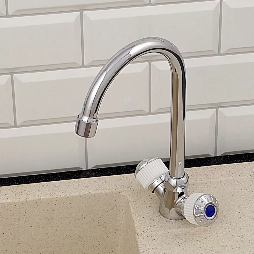 Смеситель для кухни двухручковый хром Potato Эверест B 59-356 A купить в Архангельске по низкой цене с доставкой