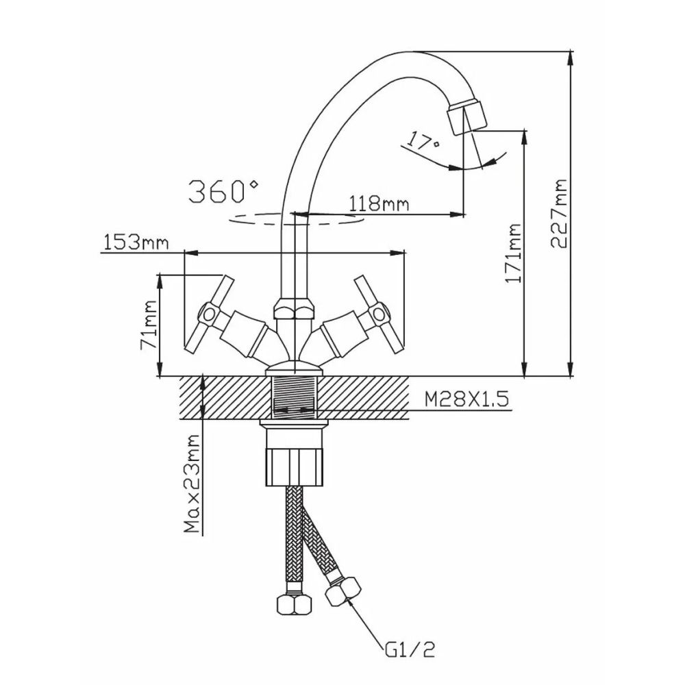 Смеситель для кухни двухручуовый хром Potato Эверест B 49-316 купить в Архангельске по низкой цене с доставкой