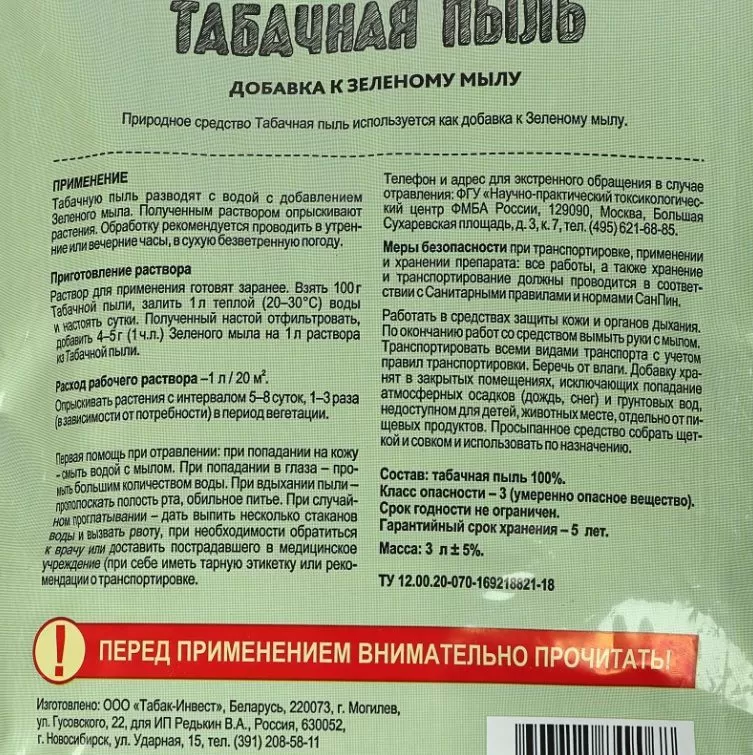 Табачная пыль 3 л (1 кг) Green Land купить в Архангельске по низкой цене с доставкой