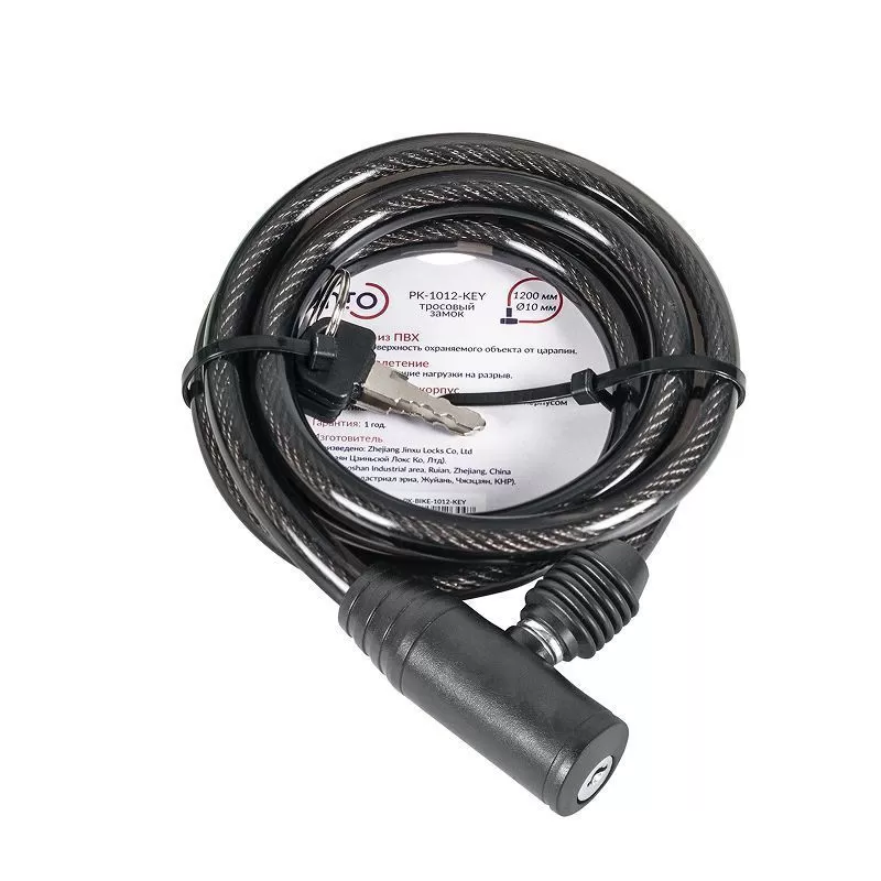 Замок тросовый PK-BIKE-1012-KEY (10х1200) 2key/подвес купить в Архангельске по низкой цене с доставкой